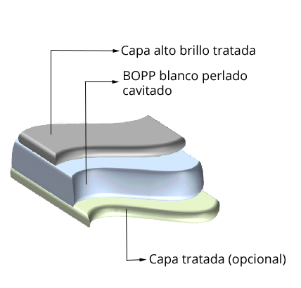 | Características | Blanco opaco perlado cavitado, termosellable 2/C, tratado 2/C. | |